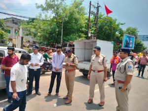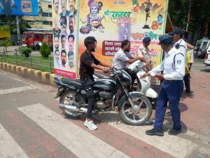 उक्त कार्यवाही के दौरान वाहन चालकों एवं राहगीरों को यातायात नियमों की जानकारी प्रदान कर जागरूक भी किया गया।