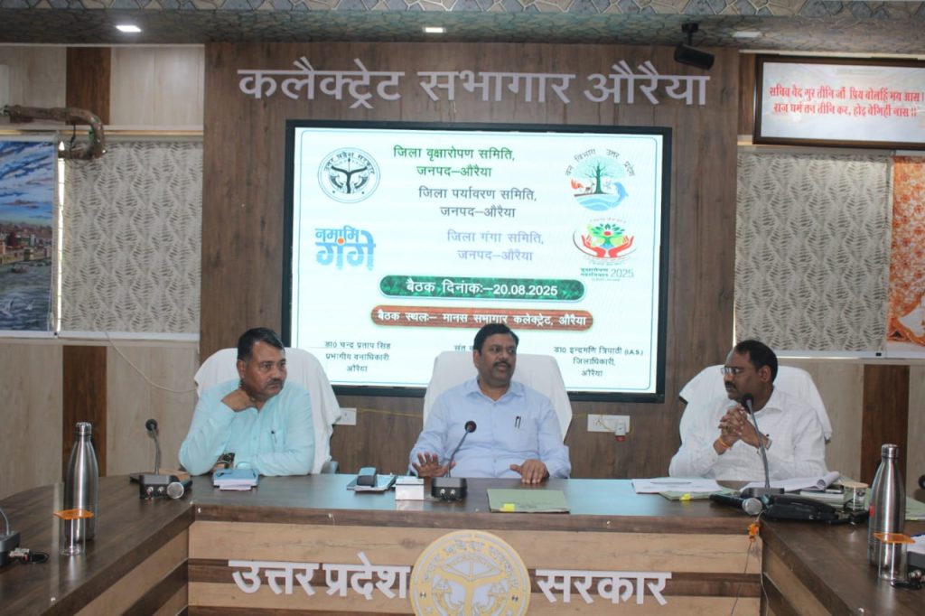 औरैया 20 अगस्त 2025 – जिलाधिकारी डा0 इन्द्रमणि त्रिपाठी ने कलेक्ट्रेट स्थित मानस सभागार में जिला वृक्षारोपण समिति, जिला पर्यावरण समिति एवं जिला गंगा समिति की बैठक कर संबंधितों को आवश्यक दिशा निर्देश दिए। बैठक में प्रभागीय वनाधिकारी सी पी सिंह द्वारा ग्रीन चौपाल के शासनादेश के संबंध में अवगत कराया गया। जिस पर जिलाधिकारी ने प्रत्येक ग्राम पंचायत एवं नगरीय निकाय में ग्रीन चौपाल आयोजित करने हेतु निर्देशित किया साथ ही कहा कि 22 अगस्त को प्रत्येक ग्राम पंचायत में ग्रीन चौपाल का आयोजन किया जाए। उन्होंने कहा कि वृक्षारोपण कार्य हेतु चयनित स्थलों पर कराए गए कार्यों की सभी संबंधित विभागीय अधिकारी डिजिटल डायरी तैयार कर आगामी बैठक में लाना सुनिश्चित करें। पर्यावरण समिति की बैठक में जे आर एफ दीपक तिवारी ने आर आर सी सेंटर चिचोली की स्थिति से अवगत कराया कि सेंटर बंद पड़ा हुआ है, जिस पर जिलाधिकारी द्वारा रोष व्यक्त करते हुए कहा गया कि बंद पड़े आरआरसी सेंटरों को पूरी क्षमता से संचालित किया जाए। गंगा समिति की बैठक में ज़िला परियोजना अधिकारी साक्षी शुक्ला द्वारा अवगत कराया गया कि राज्य स्वच्छ गंगा मिशन द्वारा जनपद में कम से कम 10 विद्यालयों में जागरूकता गतिविधियों आयोजित किए जाने के निर्देश प्राप्त हुए हैं। उक्त के संबंध में जिलाधिकारी ने जिला बेसिक शिक्षा अधिकारी को निर्देशित किया कि वह 10 विद्यालयों की सूची उपलब्ध कराएंगे ताकि उनमें सम्पूर्ण व्यवस्थाएं कराते हुए पर्यावरण के सम्बन्ध में जागरूकता गतिविधियों कराई जा सके।