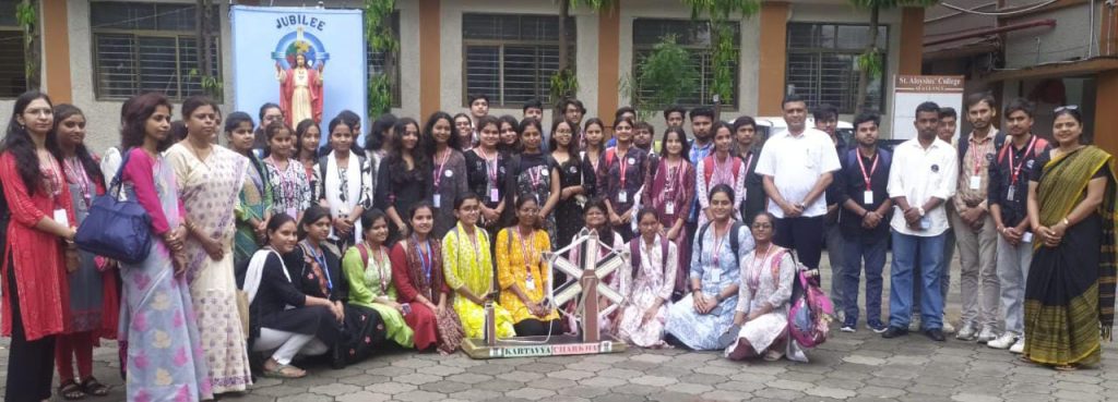जबलपुर – राष्ट्रीय हथकरघा दिवस के अवसर पर सेंट एलॉयसियस कॉलेज, जबलपुर के उद्यमिता विकास प्रकोष्ठ ने 23 अगस्त, 2025 को हथकरघा जागरूकता कार्यक्रम आयोजित किया तत्पश्चात प्रतिभास्थली तिलवारा हथकरघा कारखाने का क्षेत्रीय भ्रमण किया गया ।जागरूकता कार्यक्रम की मुख्य संसाधन व्यक्ति, सेंट एलॉयसियस कॉलेज की आईआईसी समन्वयक, डॉ. फेमिना सोबिन थीं, जिन्होंने हथकरघा कारीगरों से जुड़े मुद्दों और उनके समाधानों पर चर्चा की और भारत के इतिहास पर भी प्रकाश डाला, जहाँ चरखा बुनाई का एक प्रमुख साधन था।