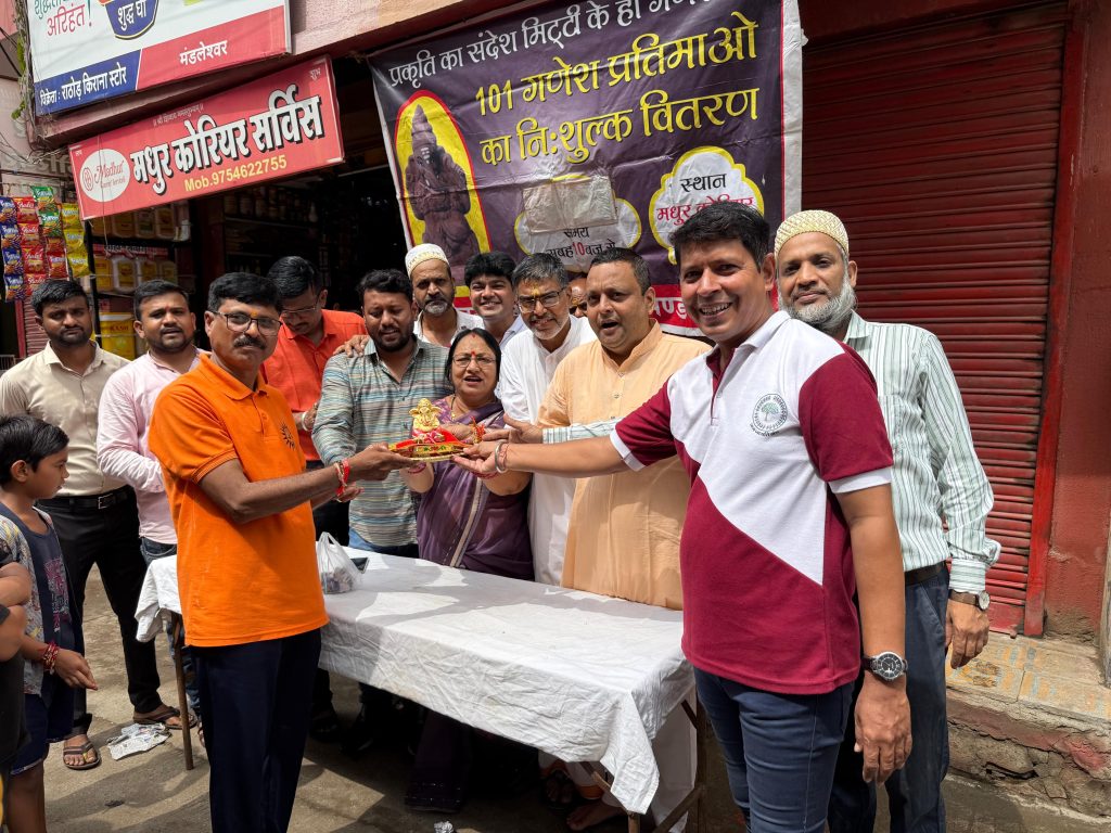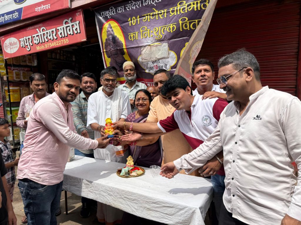 मण्डलेश्वर: नगर की अग्रणी सामाजिक संस्था जन जागृति मंच ने 101 मिट्टी से निर्मित गणेश प्रतिमाओं का निशुल्क वितरण किया। ज्ञात हो कि माँ नर्मदा को पीओपी जैसे रासायनिक पदार्थ के प्रदूषण से बचाने के उद्देश्य से जन जागृति मंच ने 10 वर्ष पूर्व निशुल्क मिट्टी से निर्मित गणेश प्रतिमाओं का वितरण करना शुरू किया था जो प्रतिवर्ष जारी है। इसी श्रृंखला में बुधवार को गणेश चतुर्थी के उपलक्ष्य में मिट्टी से निर्मित प्रतिमाओं का वितरण किया गया। आयोजन के मुख्य अथिति प. पंकज मेहता एवं समाजसेवी तरुणा तवर थे। दोनो अतिथि द्वय द्वारा प्रतिमाओं का वितरण किया गया। प्रतिमाओं के वितरण के उपरांत प. मेहता ने जानकारी देते हुए बताया कि घरों एवं सार्वजनिक पंडालों में मिट्टी से निर्मित प्रतिमाओं की ही स्थापना करना चाहिए जिसका शास्त्रोक्त उल्लेख भी है। माता पार्वती ने भगवान गणेश की मिट्टी की प्रतिमा को ही जीवित कर गणेश की उत्पत्ति की थी। तभी से प्रतिवर्ष गणेश चतुर्थी के अवसर पर भगवान की स्थापना की जाती है। वर्तमान समय मे मिट्टी का स्थान हानिकारक पीओपी ने ले लिया है। जिससे हमें बचने की आवश्यकता है।