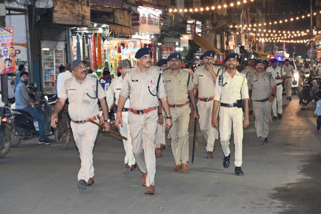 फ्लैग मार्च थाना हनुमानताल से प्रारम्भ होकर भानतलैया, कसाई मंडी, बहौराबाग, चारखंभा, गोहलपुर तिराहा, मछली मार्केट, बड़े फुहारा, लॉर्डगंज थाने के सामने, अंजुमन इस्लामिया स्कूल के पास समाप्त हुआ।
