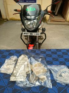 जप्ती – चांदी के 2 मुुकुट, चरण पादुका, छत्र, हार एंव घटना में प्रयुक्त मोटर सायकिल जप्त।