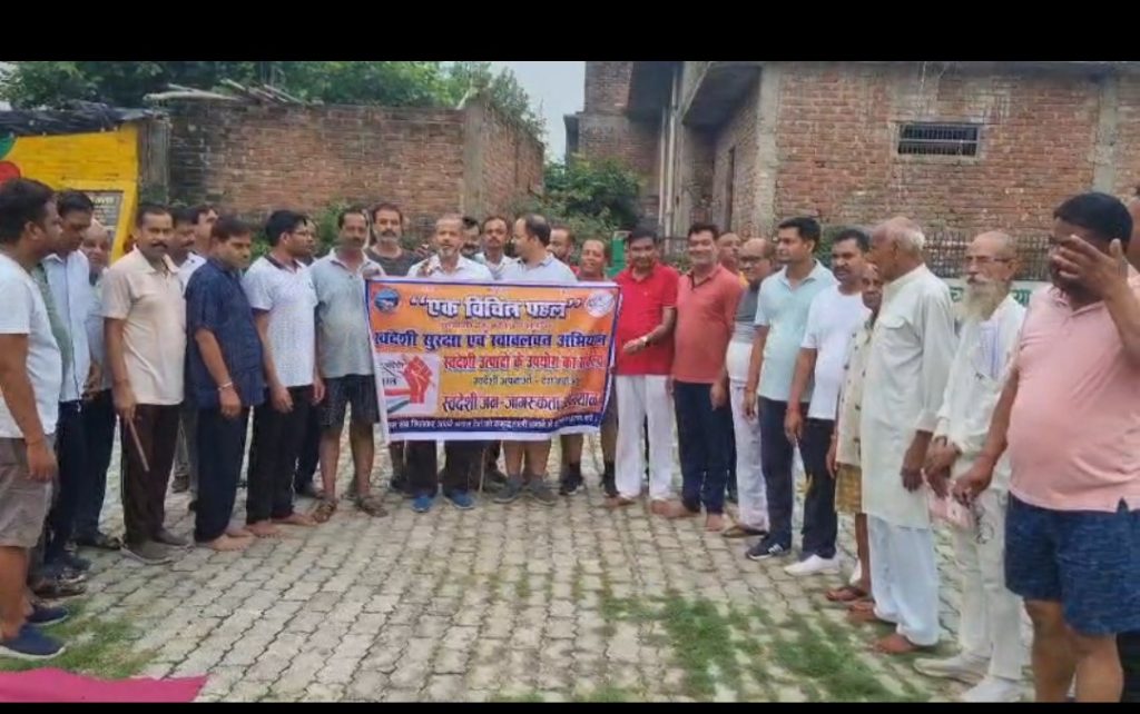 औरैया -समाजसेवी संगठन एक विचित्र पहल सेवा समिति, औरैया द्वारा आज दिनांक 31अगस्त-2025 दिन रविवार को प्रातः 7 बजे गौरैया तालाव पार्क, औरैया में स्वदेशी सुरक्षा एवं स्वावलंबन अभियान प्रारंभ किया गया जिसके अंतर्गत समिति के सदस्यों द्वारा विदेशी वस्तुओं के उपयोग से देश को निरंतर हो रहे नुकसान के बारे में जानकारी प्रदान करते हुए विदेशी वस्तुओं का परित्याग कर स्वदेशी वस्तुओं के उपयोग हेतु जागरूक किया गया, मौजूद लोगों ने “स्वदेशी अपनाओ देश बचाओ” “स्वदेशी अपनाओ विदेशी भगाओ” व “स्वदेशी को अपनाना है विदेशियों को भगाना हैं” आदि नारों के साथ लोगों को जागरूक किया। समिति के अध्यक्ष राजीव पोरवाल (रानू) ने बताया कि स्वदेशी से आशय हैं कि अपने देश का या अपने देश में निर्मित वस्तुओं का उपयोग करने से हैं। समिति के संस्थापक आनन्द नाथ के एडवोकेट ने बताया कि हम लोग विदेशी वस्तुओं को खरीद कर उनकी आर्थिक व्यवस्था मजबूत कर रहे हैं, इसलिए उनके हौसले बढ़ते जा रहे हैं, हमारे पैसे की ताकत से ही वह आधुनिक हथियार खरीद कर हमारे भारत देश के निर्दोष लोगों को निशाना बनाकर हमला करते हैं। अंग्रेजों ने भी भारत में व्यापार करके हमें गुलाम बनाया था, तब हम अनभिज्ञ थे, लेकिन आज जागरूक नागरिक हैं, कल यदि भारत पर चीन का कब्जा हुआ, तो उसके लिए हम स्वयं जिम्मेदार होंगे। हम लोगों को आतंकवादी गतिविधियों में लिप्त फिरकापरस्त ताकतों से सावधान रहने की जरूरत हैं। समिति के संस्थापक ने बताया कि देश हित को दृष्टिगत रखते हुए स्वदेशी जन-जागरूकता अभियान शहरी व ग्रामीण क्षेत्रों में अनवरत् चलाया जाएगा। कार्यक्रम में प्रमुख रूप से समाजसेवी एल.एन. गुप्ता, राजेश पोरवाल (रज्जे), अनूप बिश्नोई, आनन्द गुप्ता (डाबर), हिमांशु दुबे, विनोद कुमार, आलोक कुमार, मुकेश कुमार, राकेश सिंह, जितेंद्र, भुवनेश गुप्ता, संतोष कुमार वर्मा, राम आसरे गुप्ता, देवेंद्र आर्य, लालजी अग्रवाल, पदम कुमार आदि आधा सैकड़ा जागरूक नागरिक मौजूद रहे।