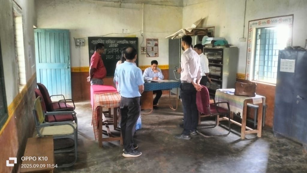 कलेक्टर श्री मृणाल मीना ने 09 सितंबर को नक्सल प्रभावित क्षेत्र के ग्राम मंडवा में आयोजित जनसमस्या निवारण शिविर में जाने के दौरान शासकीय माध्यमिक शाला नारंगी का आकस्मिक निरीक्षण कर वहां की व्यवस्थाओं को देखा। इस दौरान शाला में सभी शिक्षक उपस्थित पाए गए। कलेक्टर श्री मीना ने शाला की कक्षाओं में जाकर बच्चों से सवाल भी किए, जिनका बच्चों द्वारा सही जवाब दिया गया। कलेक्टर श्री मीना ने बच्चों से मध्यान्ह भोजन और गणवेश की जानकारी भी ली और उन्हें अपनी पढ़ाई पर विशेष ध्यान देने कहा। इस दौरान जिला पंचायत सीईओ श्री अभिषेक सराफ, बैहर एसडीएम श्री अर्पित गुप्ता, सहायक कलेक्टर श्री आकाश अग्रवाल भी मौजूद थे। एसडीएम श्री अर्पित गुप्ता ने इस दौरान बताया कि बैहर अनुभाग की शालाओं में शिक्षकों की जीपीएस आधारित अटेंडेंस लगाई जा रही है और वे स्वयं इसकी निगरानी कर रहे हैं। उनके द्वारा अक्टूबर 2024 से जीपीएस आधारित अटेंडेंस को रुप से लागू किया गया है।