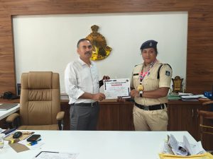 पुलिस अधीक्षक जबलपुर श्री सम्पत उपाध्याय (भा.पु.से.) द्वारा पुलिस अधीक्षक कार्यालय में उज्वल भविष्य की कामना कर बधाई देते हुये उप निरीक्षक सुनीता पंच एवं महिला आरक्षक रंजना शर्मा तथा महिला आरक्षक सपना को प्रथम स्थान प्राप्त करने प्रमाण पत्र प्रदान कर सम्मानित करते हुये कहा कि आशा है भवष्यि में भी आप इसी प्रकार विभाग का नाम रौशन करती रहेंगी।