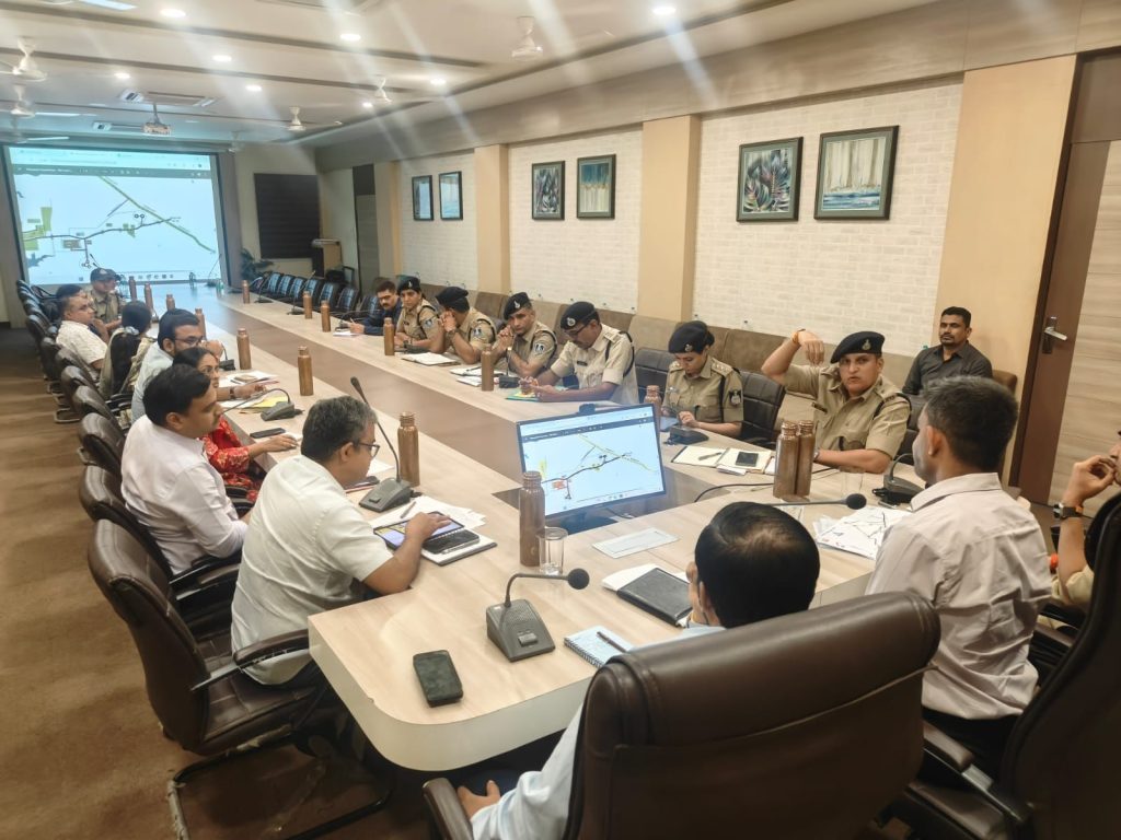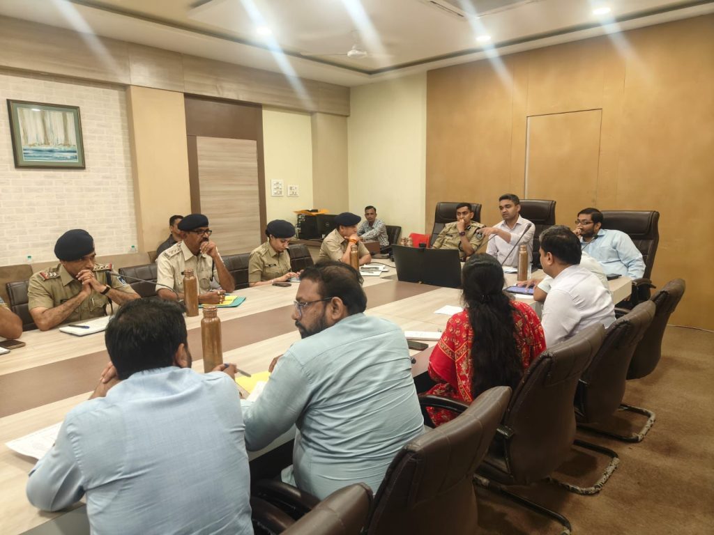 धार – प्रधानमंत्री श्री नरेंद्र मोदी के 17 सितम्बर को पीएम मित्रा पार्क भैसोला आगमन के मद्देनजर कलेक्टर श्री प्रियंक मिश्रा की अध्यक्षता में उच्च स्तरीय सुरक्षा एवं संचालन व्यवस्था को लेकर महत्वपूर्ण बैठक कलेक्टर कार्यालय के सभागार में संपन्न हुई। बैठक में एसपी श्री मयंक अवस्थी, सीईओ श्री अभिषेक चौधरी सहित अन्य पुलिस और प्रशासनिक अधिकारी उपस्थित रहे। कलेक्टर श्री मिश्रा ने सभी संबंधित अधिकारियों को निर्देश दिए कि प्रधानमंत्री के आगमन के अवसर पर उच्चतम सुरक्षा मानकों और सुव्यवस्थित कार्यक्रम संचालन को सुनिश्चित किया जाए। प्रत्येक कार्य का पालन समयबद्ध एवं प्रभावी ढंग से किया जाए ताकि यह महत्वपूर्ण कार्यक्रम सफलता पूर्वक संपन्न हो।