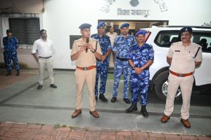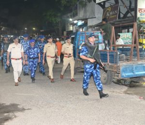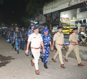 नवरात्रि एवं दुर्गोत्सव पर्व पर साम्प्रदायिक सौहार्द एवं कानून व्यवस्था बनाये रखने हेतु आज दिनांक 22-9-25 केा शाम 6 बजे पुलिस अधीक्षक जबलपुर, श्री सम्पत उपाध्याय (भा.पु.से.) के मार्गदर्शन में अतिरिक्त पुलिस अधीक्षक शहर श्री आयुष गुप्ता (भा.पु.से.) के नेतृत्व में एक फ्लैग मार्च पुलिस कन्ट्रोलरूम जबलपुर से निकाला गया।