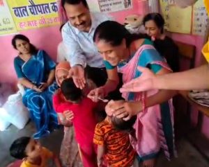 महिला बाल विकास विभाग परियोजना नागदा के साथ मिलकर लायंस क्लब नागदा एवं इंद्र फाउंडेशन नागदा ने संयुक्त रूप से वार्ड क्रमांक 26 इंद्रपुरी कॉलोनी के आंगनबाड़ी केंद्र पर राष्ट्रीय पोषण माह कार्यक्रम के अंतर्गत सशक्त नारी, सशक्त परिवार थीम को आधार बनाकर आंगनबाड़ी केंद्र पर 31 बच्चों को कृमि नाशक दवाई पिलाई गई। लायंस क्लब सचिव सुनील त्रिवेदी महिला पालकों को बताया कि तीव्र संक्रमण के कई लक्षण होते हैं जैसे कमजोरी, भूख न लगना, खून की कमी व कुपोषण, जीमचलाना, पेट में दर्द उल्टी दस्त थकान। यदि यह लक्षण बच्चों में दिखे तो तुरंत उनका स्वास्थ्य परीक्षण करवाना चाहिए, क्योंकि कृमि संक्रमण से बच्चों के शारीरिक और मानसिक विकास पर नकारात्मक असर पड़ता है।