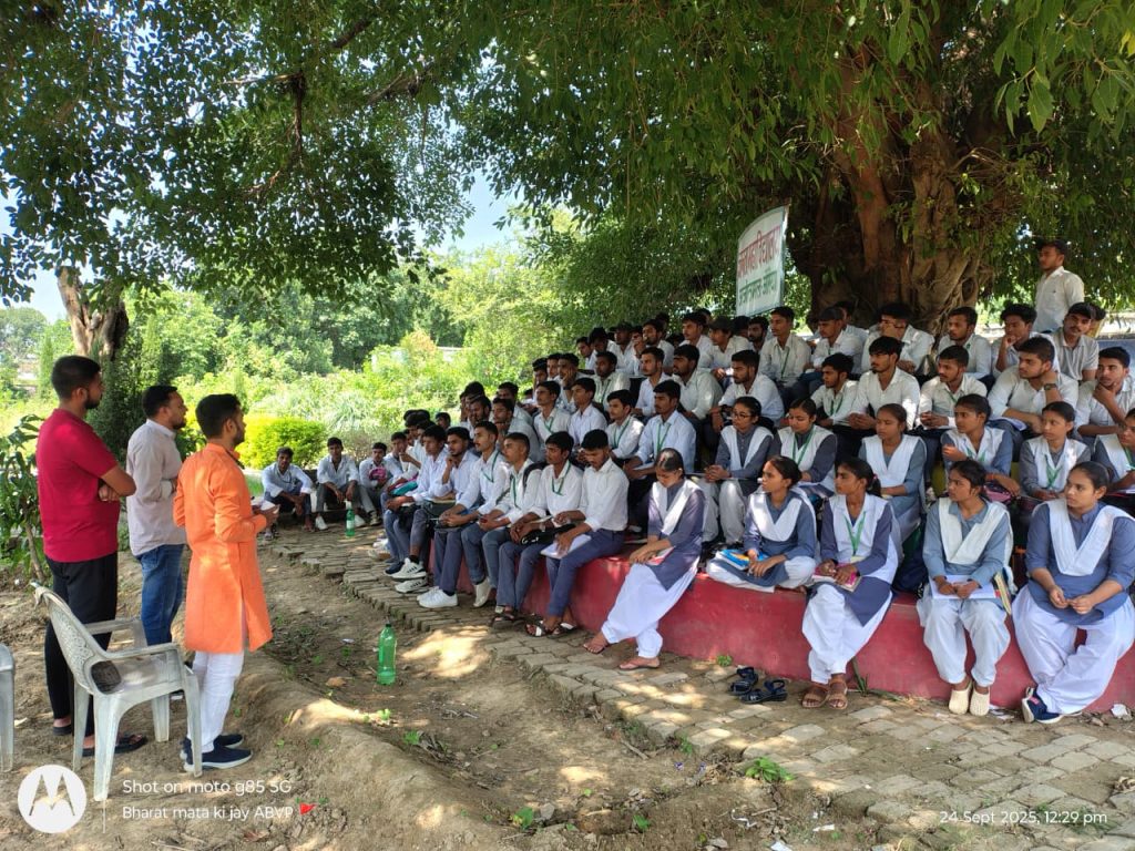 विश्व का सबसे बड़ा छात्र संगठन है। जो छात्रों के हित के साथ साथ सामाजिक कार्यों में भी बढ़-चढ़ कर भाग लेता है। इस दौरान विभाग संयोजक सुदीप चौहान ने बताया की युवाओ को राष्ट्र निर्माण में अपनी सहभागिता सुनिश्चित करनी चाहिए,और जहां कम वहां हम की भावना से प्रत्येक क्षेत्र मे अपना योगदान देना चाहिए इस दौरान संदीप शर्मा, यश दीक्षित, कृष्ण जादौन, वंदना कुमारी सहित शिक्षक व कार्यकर्ता मौजूद रहे।