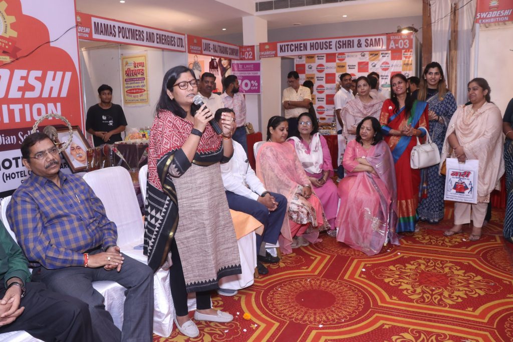 कलेक्टर श्रीमती रूचिका सिंह चौहान ने कहा कि कैट महिलाओं को ऐसे अवसर उपलब्ध करा रहा है जिसके माध्यम से उन्हें एक बाजार मिल रहा है और वे समाज में अपना बेहतर स्थान बना रही है। स्वदेशी एग्जीवीशन सही मायने में वर्तमान की आवश्यक्ता है और प्रधान मंत्री के लोकल फोर वोकल को पूरा करता हैं। कार्यक्रम की अध्यक्षता संत कृपालसिंह जी ने की। विशिष्ट अतिथि के रूप में संभागीय महामंत्री मुकेश जैन, संयुक्त अध्यक्ष मुकेश अग्रवाल विशेष रूप से उपस्थित थे। कैट के राष्ट्रीय संगठन मंत्री भूपेन्द्र जैन ने दो दिवसीय स्वदेशी एग्जीवीशन की जानकारी अतिथियों को प्रदान की।