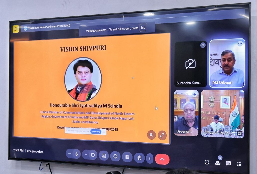 शिवपुरी/नई दिल्ली। केन्द्रीय संचार एवं पूर्वोत्तर क्षेत्र मंत्री तथा गुना सांसद ज्योतिरादित्य सिंधिया ने आज नई दिल्ली से अपने संसदीय क्षेत्र के शिवपुरी जिले के समग्र विकास कार्यों की समीक्षा के लिए एक उच्चस्तरीय वर्चुअल बैठक की। बैठक में स्थानीय विधायक, जिला कलेक्टर, प्रभारी मंत्री प्रद्युम्न सिंह तोमर, भाजपा जिला अध्यक्ष तथा अन्य जनप्रतिनिधि उपस्थित रहे। बैठक में सभी प्रतिनिधियों के सुझाव लिए गए और सर्वसम्मति से अनेक महत्वपूर्ण निर्णय लिए गए।