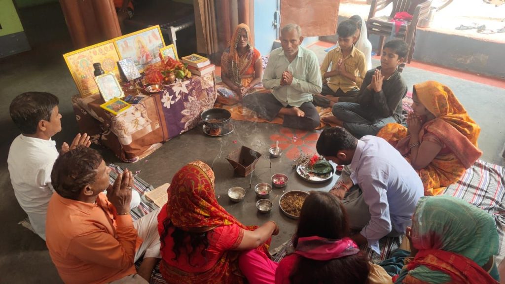 तहसील हसनपुर क्षेत्र के ग्राम नगलिया मुंशी में नवरात्रि के समापन के अवसर पर राष्ट्र सेवी संगठन कार्यकर्ताओं ने संगठन संस्थापक सदस्य रूपचंद चौहान के आवास पर देवी पूजा के बाद राष्ट्र की मंगल कामना के साथ यज्ञ का आयोजन किया। इस अवसर पर उपस्थित राष्ट्र सेवी संगठन एवं भाजपा हसनपुर विधान सभा संयोजक कृष्ण कुमार शर्मा ने बताया कि नवरात्रि प्रारंभ होने से पहले जीवनोपयोगी वस्तुओं पर जी एस टी की दरों में कमी करके प्रधान मंत्री जी ने देशवासियों को खुशहाली का तोहफा दिया है। ऑपरेशन सिंदूर की सफलता के बाद से बौखलाए अमेरिकी राष्ट्रपति डोनाल्ड ट्रंप द्वारा भारतीय उत्पादों पर डबल टैक्स लगाने से देश के प्रति उनकी दुर्भावनाएं उजागर हुईं हैं। ऐसे में प्रत्येक भारत वासी का यह कर्तव्य है कि जीवन में स्वदेश निर्मित वस्तुओं के प्रयोग का संकल्प लें। जिससे भारत में निर्मित वस्तुओं को अमेरिका जैसे दुर्भावना युक्त देशों में नहीं भेजना पड़े। साथ ही विदेश निर्मित वस्तुओं के खरीदने से वहां पर जाने वाली देश की मुद्रा पर अंकुश लगाया जा सके।