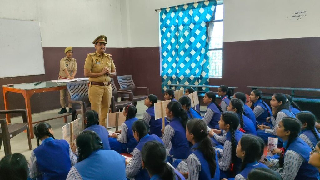 आज दिनांक 03.10.2025 को प्रभारी निरीक्षक महिला थाना डॉ शालिनी सिंह द्वारा आर डी सर्माउंट इंटरनेशनल स्कूल अमहट घाट थाना कोतवाली में जाकर छात्राओं को सुरक्षा के विभिन्न आयामों से परिचय कराया गया तथा मिशन शक्ति से संबंधित समस्त हेल्प लाइन नंबर्स 1090, 112,1098, 1076, 1930,108 ,181 आदि की विधिवत जानकारी दी गयी तथा साइबर फ्राड और साइबर क्राइम व हाउस अरेस्ट के बारे में बिस्तार पूर्वक जानकारी दी गयी, इसके साथ ही गुड टच बैड टच एवं मार्शल आर्ट की विभिन्न विधाओं से परिचित कराया गया। प्रभारी निरीक्षक महिला थाना द्वारा छात्राओं के साथ संवाद का कार्यक्रम भी किया गया छात्राओं ने बढ़ चढ़कर हिस्सा लिया उनके द्वारा कानून से संबंधित अनेकों प्रश्न पूछे गए सभी प्रश्नों का यथोचित उत्तर दिया गया इस कार्यक्रम में लगभग 300 छात्राएं मौजूद रही उनके द्वारा बताया गया कि ये कार्यकम बेहद पसंद आया कालेज प्रबंधन द्वारा बस्ती पुलिस के प्रति विशेष आभार व्यक्त किया गया।