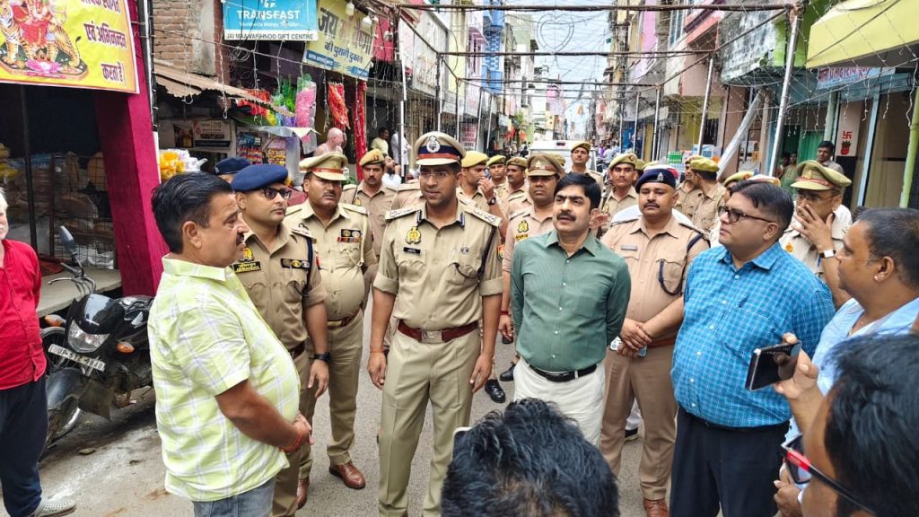 श्रीमान् मण्डलायुक्त बस्ती मण्डल बस्ती, श्रीमान पुलिस उप महानिरीक्षक बस्ती परिक्षेत्र बस्ती, श्रीमान जिलाधिकारी बस्ती व पुलिस अधीक्षक बस्ती महोदय द्वारा अपर पुलिस अधीक्षक बस्ती, क्षेत्राधिकारी सदर, व भारी पुलिस बल के साथ दशहरा मेला एवं प्रतिमा विसर्जन को शांतिपूर्ण और सकुशल संपन्न कराने के दृष्टिगत थाना पुरानी बस्ती अंतर्गत दक्षिण दरवाजा से मंगल बाजार, करुआ बाबा मंदिर तक पैदल गस्त की गई। इस दौरान पंडालों, और भीड़-भाड़ वाले स्थानों पर सुरक्षा व्यवस्था का जायजा लिया गया तथा आमजन से संवाद स्थापित कर सुरक्षा का एहसास कराया गया। मेले क्षेत्र में लगाए गए बैरियर, सीसीटीवी कैमरों, ड्रोन निगरानी एवं अतिरिक्त पुलिस फोर्स की तैनाती का जायजा लिया गया। साथ ही, नागरिकों से अपील की गई कि किसी भी संदिग्ध गतिविधि की जानकारी तुरंत नजदीकी थाने या डायल 112 पर दें। सामाजिक सौहार्द और शांति बनाए रखने में सहयोग करने का आग्रह किया गया। इस दौरान थानाध्यक्ष पुरानी बस्ती मय पुलिस टीम व अन्य संबधित अधिकारी कर्मचारी मौजूद रहे।