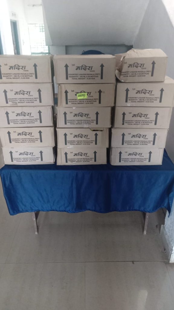 आदेश के परिपालन में अतिरिक्त पुलिस अधीक्षक ग्रामीण श्री सूर्यकात शर्मा एवं एसडीओपी पाटन श्री लोकेश डाबर के मार्ग दर्शन में थाना बेलखेडा की टीम द्वारा खण्डहरनुमा मकान में छिपाकर रखी 750 पाव अवैध देशी शराब जप्त की गयी है।