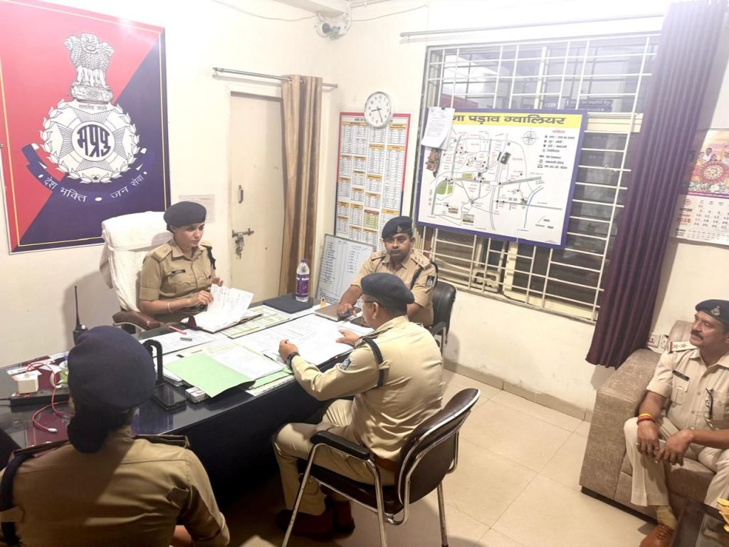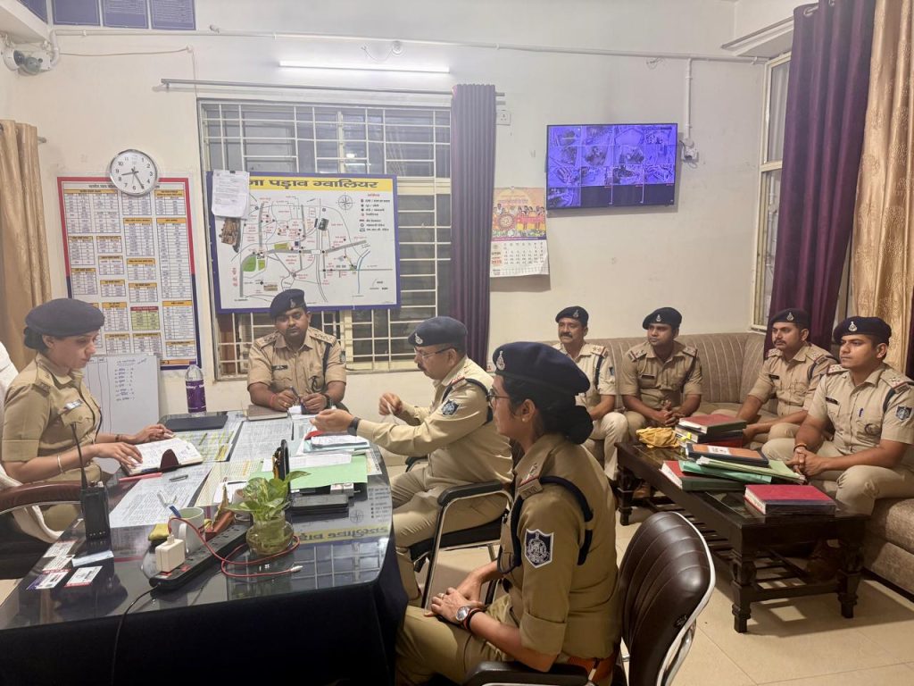 अतिरिक्त पुलिस अधीक्षक (मध्य/ यातायात), ग्वालियर श्रीमती अनु बेनीवाल के द्वारा पड़ाव थाने एवं सीएसपी इंदरगंज ऑफिस का आकस्मिक निरीक्षण किया।