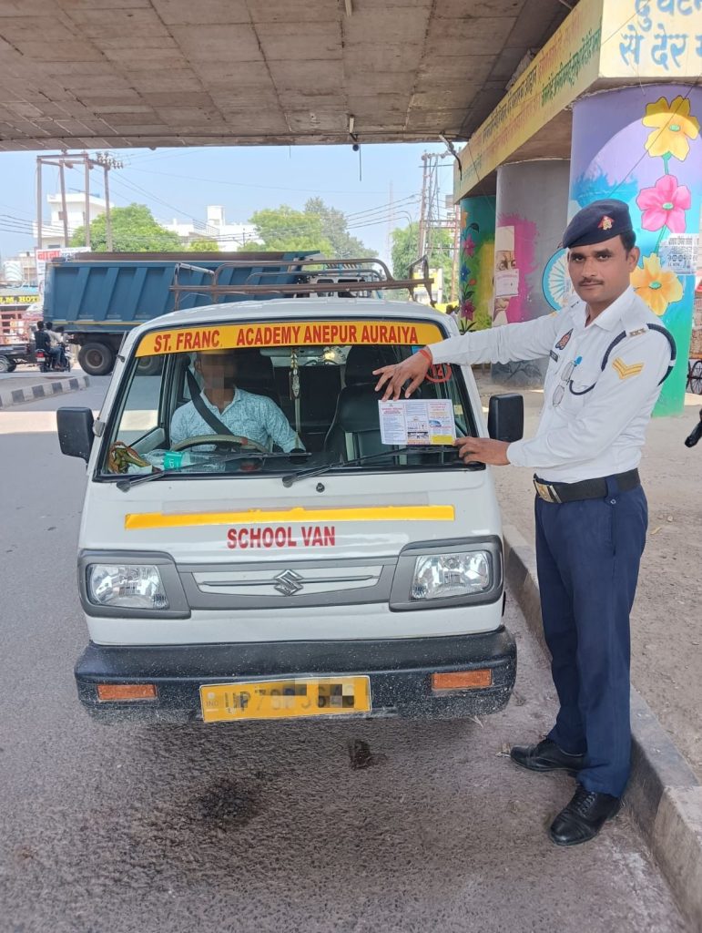 औरैया –आज दिनांक 03.11.2025 को यातायात माह के अन्तर्गत चलाए जा रहे विशेष अभियान में श्रीमान पुलिस अधीक्षक औरैया महोदय के कुशल निर्देशन में एवं श्रीमान अपर पुलिस अधीक्षक महोदय व श्रीमान क्षेत्राधिकारी यातायात महोदय के निकट पर्यवेक्षण मे प्रभारी यातायात द्वारा जनपद में निम्नवत जागरूक कार्यक्रम व प्रवर्तन की कार्यवाही की गयी –