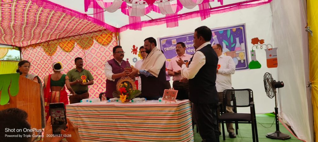 विज्ञान प्रदर्शनी का पुरस्कार वितरण और समापन समारोह 28 नवंबर 2025 को आयोजित किया गया था। राजीव बोंगिरवार, सहायक परियोजना अधिकारी (शिक्षा), चंद्रपुर, अध्यक्ष के रूप में, सुधाकर गौरकर, सहायक परियोजना अधिकारी (शिक्षा), गिरीश पोल, सहायक परियोजना अधिकारी (विकास) और संजय जगताप, लेखा अधिकारी आदि मुख्य अतिथि के रूप में उपस्थित थे। प्रदर्शनी की समीक्षा श्री संतोष साठे सर, हिंगलाज भवानी हाई स्कूल, चंद्रपुर और श्री धनंजय जिराफ सर, प्रियदर्शिनी कन्या विद्यालय, चंद्रपुर ने की।