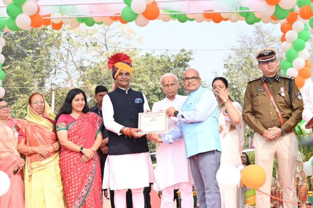 आज प्रभार जिला खरगोन स्थित डीआरपी लाइन में 77वें गणतंत्र दिवस के अवसर पर आयोजित समारोह में जिला प्रशासन, पुलिस, स्वास्थ्य सहित विभिन्न विभागों में उत्कृष्ट कार्य करने वाले अधिकारी-कर्मचारियों व विद्यार्थियों को प्रशस्ति पत्र प्रदान कर सम्मानित किया।