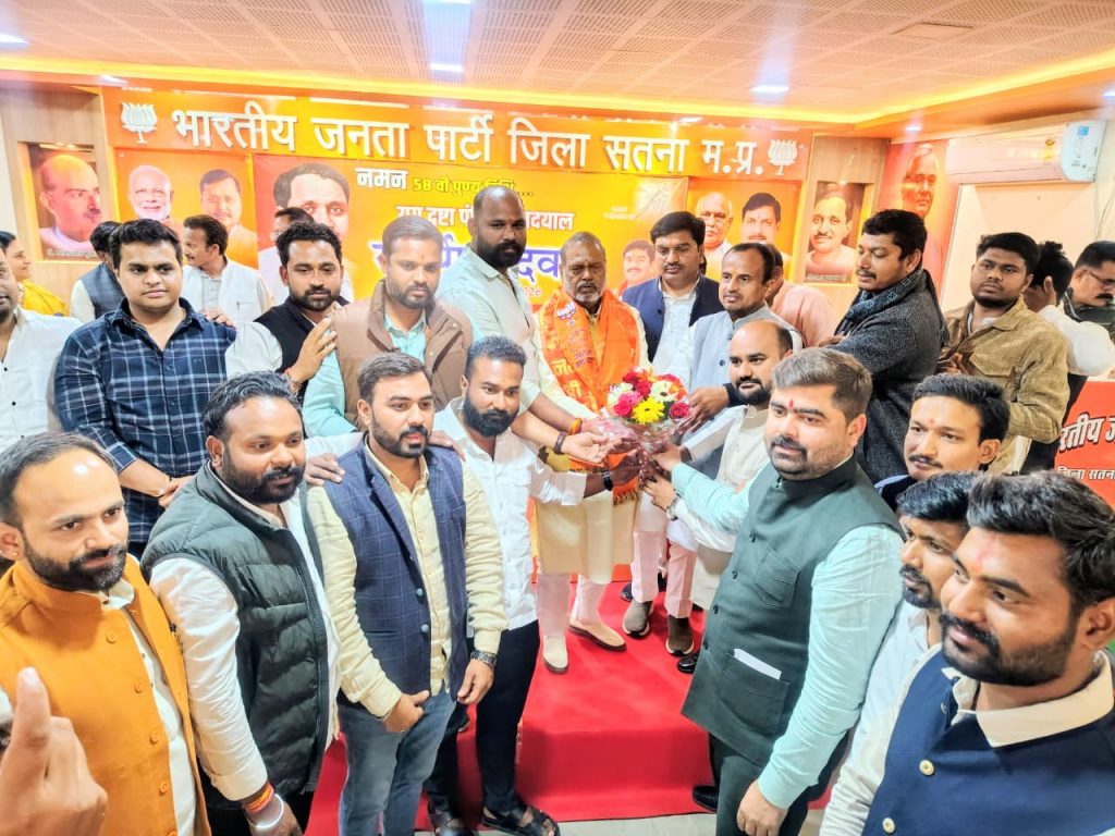 सतना। भाजपा जिला कार्यालय में जिला अध्यक्ष पंडित भगवती प्रसाद पांडेय के नेतृत्व में मध्यप्रदेश सरकार के कैबिनेट मंत्री नारायण सिंह कुशवाहा (सामाजिक न्याय, निशक्तजन कल्याण, उद्यानिकी एवं खाद्य प्रसंस्करण विभाग) का भव्य स्वागत किया गया। इस अवसर पर बड़ी संख्या में पार्टी पदाधिकारी और कार्यकर्ता उपस्थित रहे।