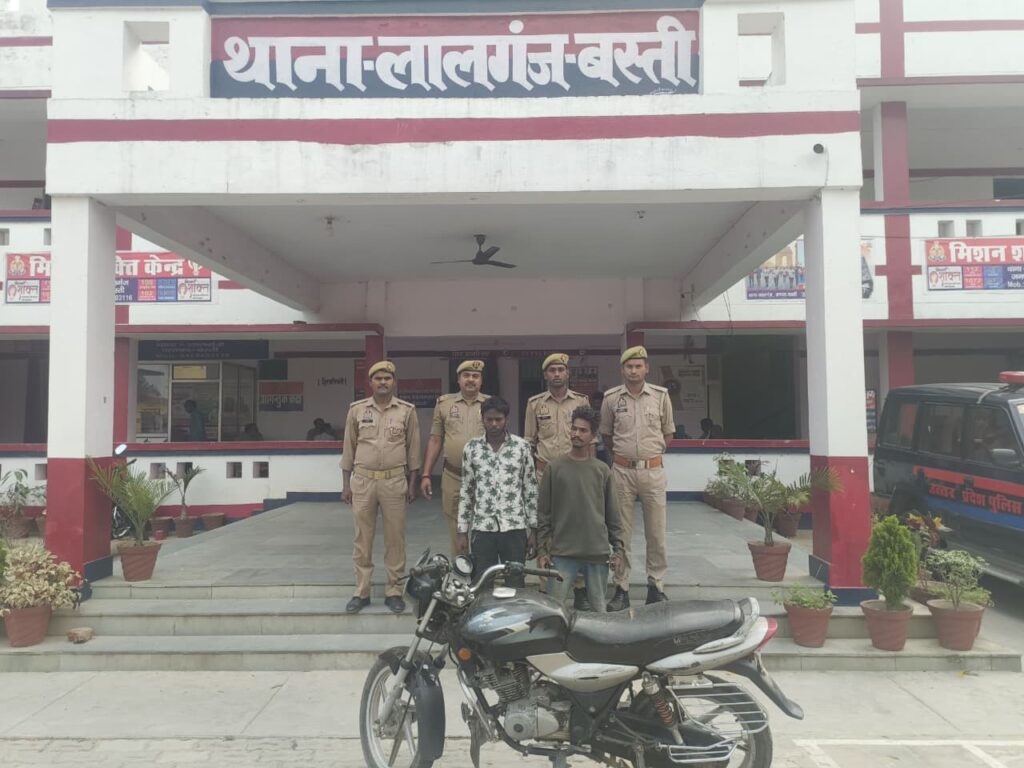 प्रभारी निरीक्षक लालगंज विनय कुमार पाठक के नेतृत्व मे थाना लालगंज पुलिस बल द्वारा मु0अ0स0- 82/2026 धारा-303(2),317(2) बी.एन.एस. थाना लालगंज जनपद बस्ती से संबंधित वांछित अभियुक्त 1.पवन कुमार पुत्र गया प्रसाद 2. मोहित पुत्र मंतलाल को दिनांक- 07.04.2026 को महादेवा से बनकटी जाने वाले रास्ते के पास से गिरफ्तार कर चोरी की मोटरसाइकिल बरामद किया गया।