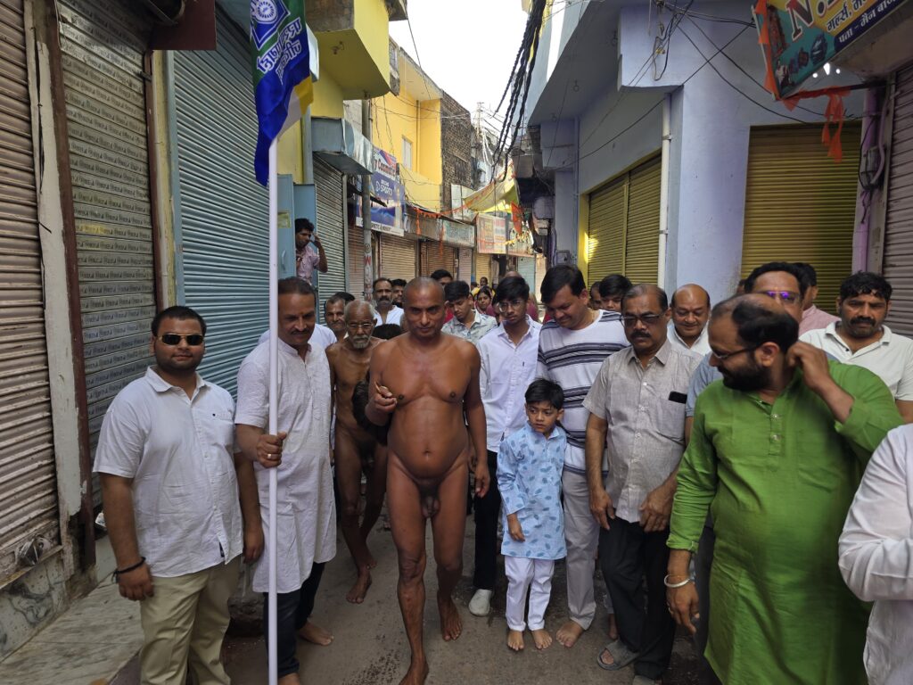 एकर आज धर्मनगरी गुरसरांय में आचार्य श्री 108 विराग सागर जी महाराज के परम प्रभावक शिष्य मुनि श्री 108 विश्रांत सागर जी मुनिराज ससंघ का गुरसरांय दिगंबर जैन समाज द्वारा भव्य अगवानी की गई 15 अप्रैल 2026 को सुबह की बेला में मुनि श्री 108 विश्रांत सागर महाराज ससंघ की दिगंबर जैन समाज द्वारा कॉलेज,कटरा बाजार,मोदी चौराहा,होते हुए श्री नसिया जी जैन मंदिर पर महाराज जी एवं समस्त भक्तों ने भगवान के दर्शन किये नगर के भक्तों द्वारा जगह-जगह पर रंगोली चोक लगाकर मुनि श्री के पाद प्रक्षालन एवं आरती की गई मेन बाजार होते हुए दिगंबर जैन बड़ा मंदिर में विराग सागर सभागार पहुंचे भक्तों के द्वारा मुनि श्री ससंघ के पाद प्रक्षालन किए गए एवं आचार्य जी का चित्र अनावरण करके मुनि श्री ससंघ को शास्त्र भेंट किऐ मुनि श्री ने मुखारविंद से सभी भक्तों को मधुर वाणी से अभिशिंचित किया, एवं टहरौली जैन समाज,चिरगांव जैन समाज, टोडी फतेहपुर जैन समाज से पधारे हुए सभी भक्तों ने मुनि श्री को श्रीफल भेट किया,दिगंबर जैन समाज एवं सभी समुदाय के लोगों ने मुनि श्री की अगवानी में शामिल होकर धर्म लाभ लिया