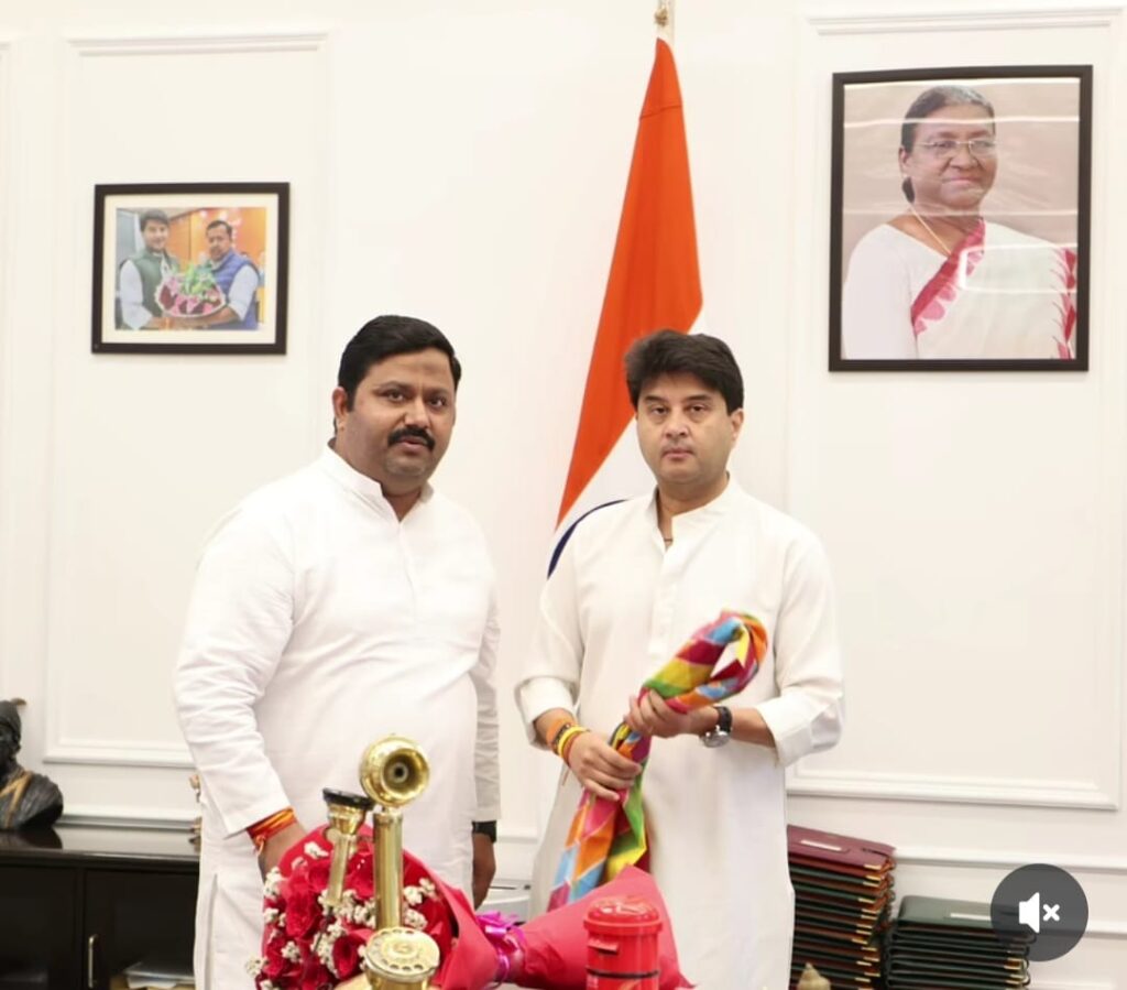 वरिष्ठ भाजपा नेता हिमांशु खत्री ने केंद्रीय मंत्री ज्योतिरादित्य सिंधिया से मुलाकात कर ग्वालियर- दिल्ली- बेंगलुरु फ्लाइट के लिए धन्यवाद किया