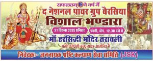 द नेशनल पावर ग्रुप (मध्य प्रदेश) के तत्वाधान में दिनांक 27-9-2025 को माँ हरसिद्धि धाम तरावली में एक भव्य कार्यक्रम आयोजित किया जा रहा है। इस अवसर पर विशाल भंडारा और माँ के भजनों का आयोजन होगा, जिसमें आप सभी श्रद्धालुओं और धर्म प्रेमी भक्तों माताओं बहनों को आमंत्रित किया जाता है September 24, 2025