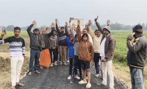घटिया सड़क निर्माण पर भड़के ग्रामीण, नारेबाजी कर किया विरोध-प्रदर्शन