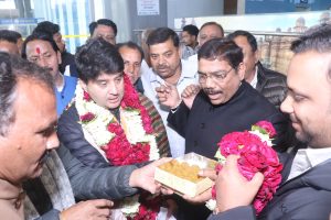 मेले में 50 प्रतिशत आरटीओ छूट पर कैट एवं मेला व्यापारी संघ ने ज्योतिरादित्य सिंधिया का एयरपोर्ट पर स्वागत किया एवं मिठाई वितरित की।* January 14, 2026