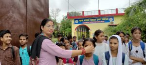 शिक्षकों के द्वारा बच्चों को रोली चंदन का टीका लगाकर ,पुष्प भेंट कर वह फल खिलाकर किया स्वागत July 1, 2025