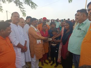 मृतक शंभू खरवार के घर पुनर्वास कॉलोनी अमवार में भाजपा जिला अध्यक्ष नन्दलाल ने 51 हजार रुपए नगद देकर ढांढस बंधाया और दिलाया इंसाफ का भरोसा।शम्भू खरवार की गला रेतकर किया गया था हत्या। August 11, 2025